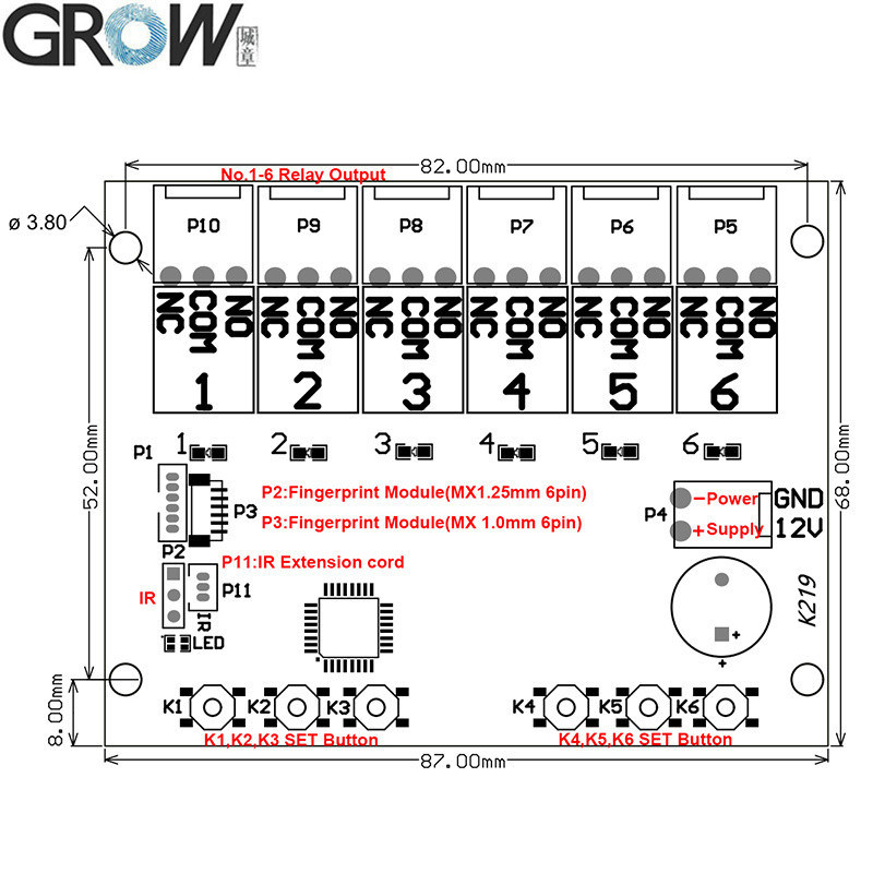 K1-K6 SET 버튼은 No.1-6 릴레이에 해당합니다.1설정 버튼:
